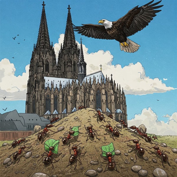 Die Ameisen und der Adler - Bild mit Gemmini generiert