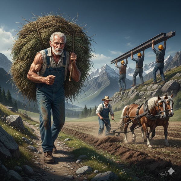 Dahinter steht der Begriff "gelebtes Leben". Fitnessstudio ist ja schön und gut, aber eben etwas Künstliches. Da draußen am Berge wird gelebt! Tägliches Steine schleppen erzeugt "natürliche" Muskeln so ganz nebenbei. Sie verstehen mich.