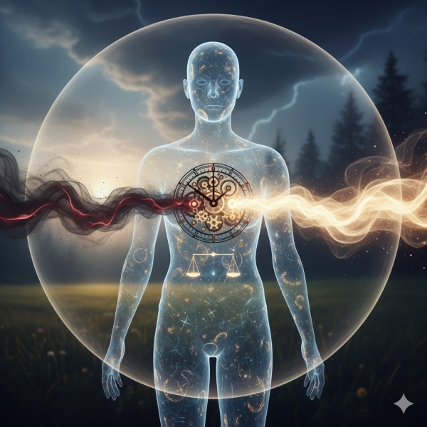 "Das Gewissen registriert wie ein Uhrwerk das Böse und das Gute" - Bild mit Gemini generiert
