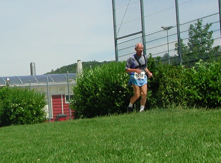 Werner Sonntag im Alter von 78 Jahren bei seinem Finish der 100 km von Biel 2004 - Fotograf: Thomas Schmidtkonz