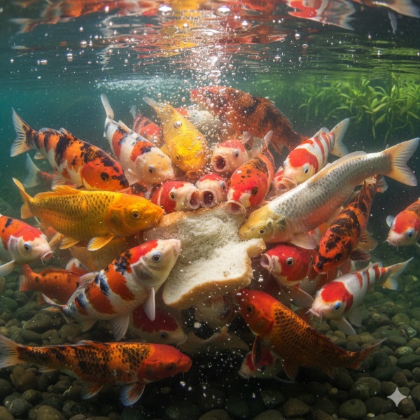 Schreibt mir ein Koi-Liebhaber. Über das Lieblingsessen seiner Fische: Das Brötchen.