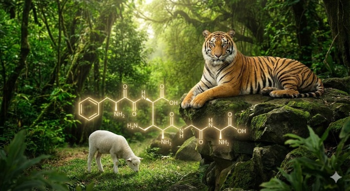 Der Tiger und das Lamm und Phenylalanin - Bild mit Gemini generiert