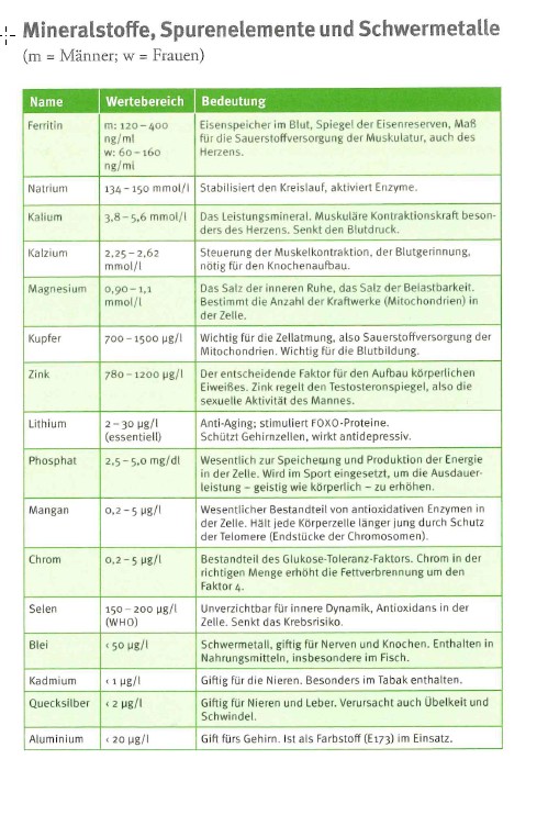 Auf Wunsch einer mir am Herzen liegenden Person finden Sie anbei die für Bluttuning wesentlichen Werte mit "neuen" Normalbereichen.