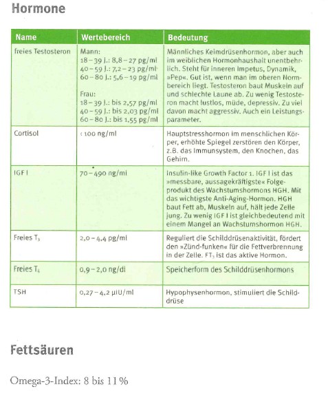 Nicht abgedruckt finden Sie die "üblichen" Werte wie Blutbild, Leberwerte, Nierenwerte, Zucker, Cholesterin etc., etc. Die werden von Ihrem Hausarzt zum Glück routinemäßig geliefert.