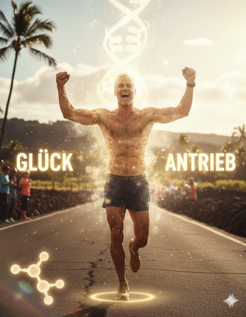 Ohne Übertreibung darf ich sagen, dass ich dem Eiweiß – mehr Eiweiß! – die glücklichsten Stunden meines Lebens verdanke. Auf Hawaii. Beim Ironman. Beim Ultraman. Da musste nämlich nicht nur der Körper (Muskeln, Blut, Knochen) stimmen, sondern auch die Hormone. Die Glückshormone. Die Antriebshormone. Alles Eiweiß.
