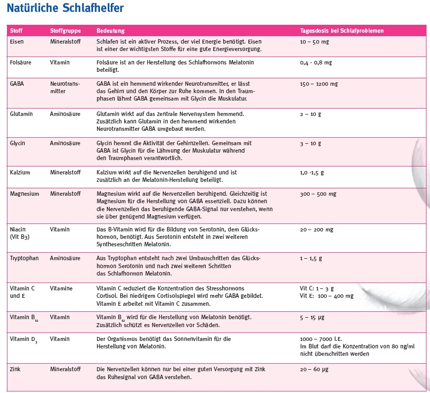 sondern, wieder einmal, Mutter Natur. Essentielle "Schlaf"-Stoffe. Weshalb im Falle eines Falles nicht einfach ausprobieren? Eine ganze Tabelle von Möglichkeiten haben wir Ihnen einmal zusammengestellt.