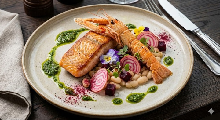 Saibling mit Langustinen - Bild mit Gemini generiert