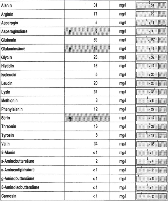 Und gucken Sie sich die Normalbereiche an. Da werden tatsächlich gefordert beispielsweise für Methionin: "kleiner als 6".