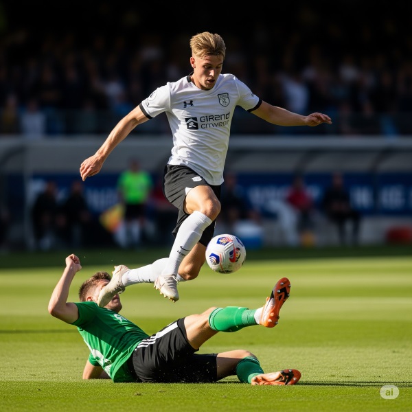 Stürmer hüpft über Verteidiger - Bild mit Gemini generiert