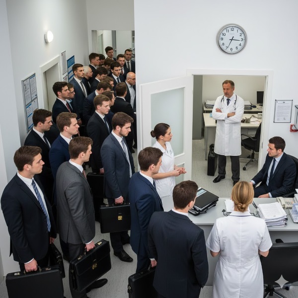 Ansturm der Pharmareferenten - Bild mit Gemini generiert