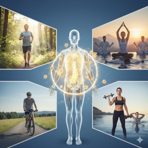 Laufen. Ganz einfach. Alternativ Yoga, Tai-Chi, meditatives Schwimmen oder Radfahren. All das hilft dabei, die Stresshormone herunterzufahren. Sport macht den inneren Arzt doppelt so aktiv und rettet Ihr Leben. Verhindert Brustkrebsrezidive um 50 Prozent, verhindert Infarktrisiko und Infektanfälligkeit um 40 Prozent. Sport erhöht die Ausschüttung von Selbstheilungszellen. Sagte die berühmteste Immunologin der Welt, Professor C. Pert aus dem führenden Forschungsinstitut der Welt, dem NIH in den USA, der Kaderschmiede für Nobelpreisträger."