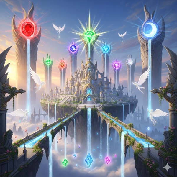 Fiktives Bild zur "Stadt der Engel, Quell göttlicher Juwelen" - Bild mit Gemini generiert