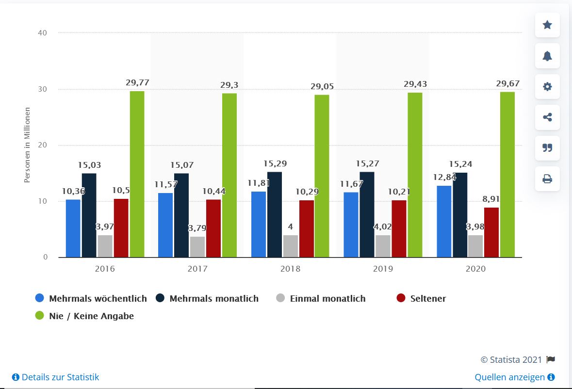 Um körperlich fit zu werden oder zu bleiben, müssen Sie mehrmals die Woche Sport treiben. Im Jahr 2020 haben das nur 12,8 Millionen Erwachsene in Deutschland getan. Fast 43 Millionen haben sich einmal monatlich, seltener oder nie sportliche betätigt, was in meinen Augen alles in die Kategorie "Kein Sport" fällt. Da müssen wir uns auch nicht über die Anzahl an Krebspatienten wundern.