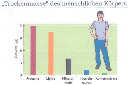 Zeigt uns, woraus der Mensch besteht, wenn man das Wasser abzieht. Da krieg ich glänzende Äuglein: Gucken Sie doch mal, wieviel Mineralstoffe Sie bräuchten. Und wieviel Kohlenhydrate.