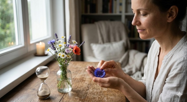 Lieb gemeinter Vorschlag: Pflücken Sie sich eine beliebige Blüte heraus und meditieren Sie, konzentrieren Sie sich nur für zwei Minuten auf den Inhalt. Auf die Aussage. Wenn Sie wollen die Farbe.