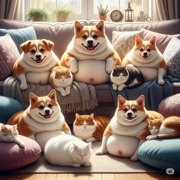 Dicke Hunde und Katzen - Bild mit Gemini generiert