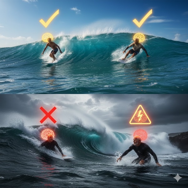 "Profis erkennen riskante Wellen deutlich besser als Amateure" - Bild mit Gemini generiert