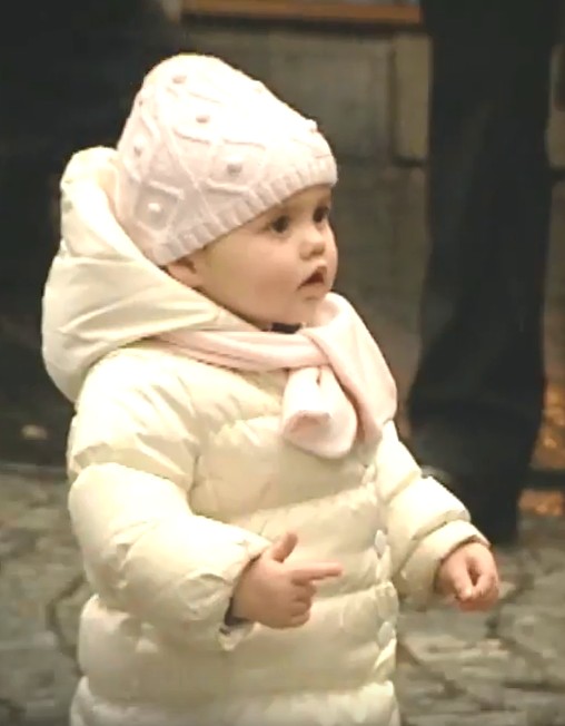 Ich weiß aber noch etwas. Beim zweiten Lied (Ave Maria) kommt der kleinere der zwei Engel, ganz in weiß, auf den Platz. Rechts der graue Sänger in einigem Abstand, links ganz allein der kleine weiße Engel. Für mich