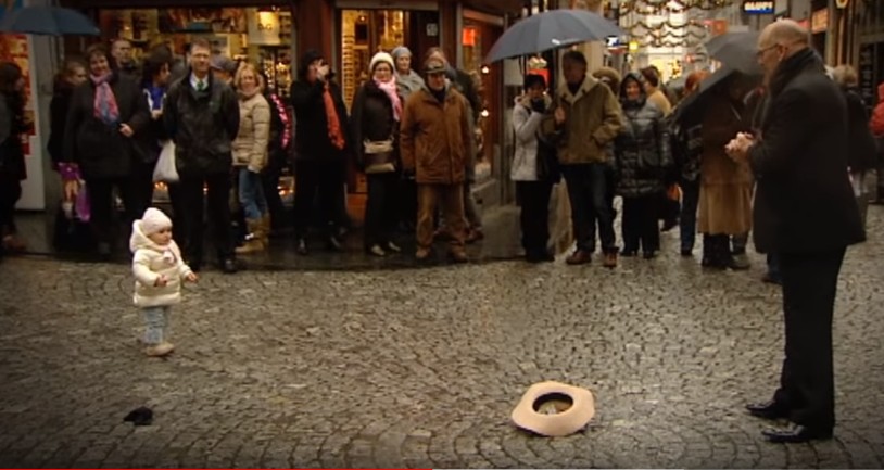 Ein Sänger. Ein Unbekannter. Ungeschult. Mitten auf dem Marktplatz. Frierend. Im Anzug. Schal. Vor sich der Hut. Und dann beginnt er zu singen.