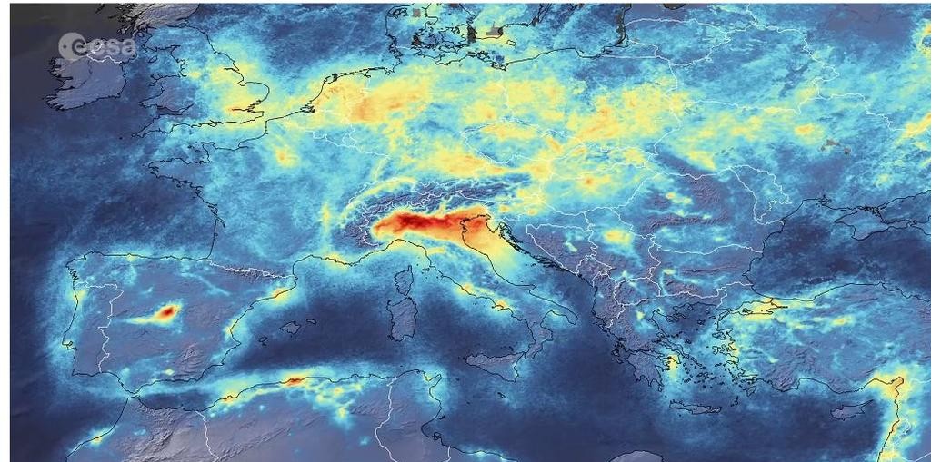 Luftverschmutzung (NO2) in Norditalien im Februar 2020 (ESA)