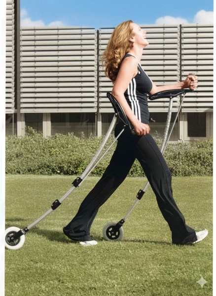 Aber deutlich weiter entwickelt. Zwei ganz raffinierte Stöcke mit Unterarmstützen, die den Körper wirklich aufrichten (wenn Sie wüssten, wie wichtig dieses Wort ist!) und die Muskulatur des Oberkörpers, ob man nun will oder nicht, tatsächlich beansprucht, trainiert.