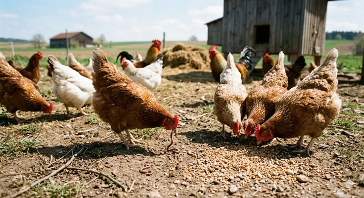 Hühner bei der Nahrungsaufnahme - Bild mit Gemini generiert