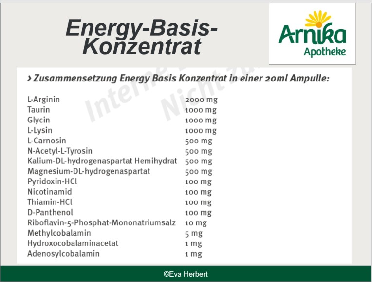 • Infusion 2: 1 Ampulle Energy Basis Konzentrat (siehe Bild unten)